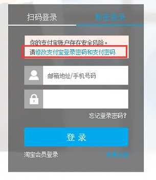 如果支付寶掃描二維碼后,頁面提示“您的支付寶賬戶存在安全風(fēng)險(xiǎn),請修改支付寶登錄密碼和支付密碼”,請點(diǎn)擊“修改支付寶登錄密碼和支付密碼”鏈接,按提示完成密碼修改,然后重新登錄進(jìn)行支付寶實(shí)名認(rèn)證: