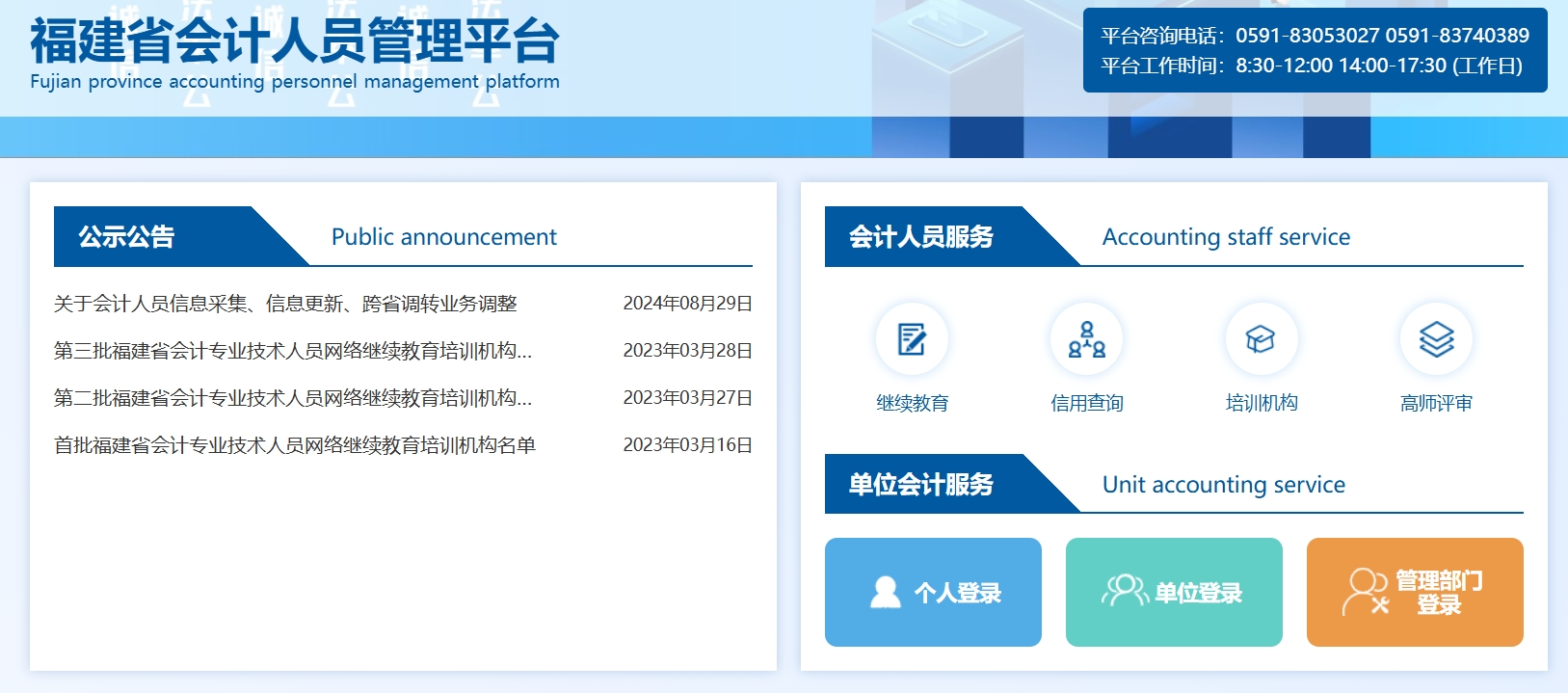 目前全國會計服務(wù)管理統(tǒng)一平臺上線,需要登陸統(tǒng)一平臺完成信息采集,福建地方采集入口已經(jīng)關(guān)閉。繼續(xù)教育學(xué)習(xí)路徑不變。點擊進行采集
