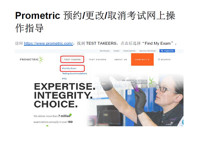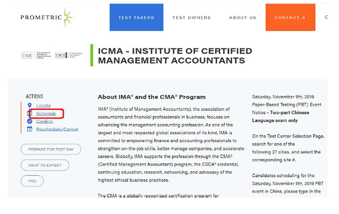 第一步、打開CMA官網(wǎng):https://www.prometric.com/,找到 TEST TAKEERS,點擊后選擇“Find My Exam”。