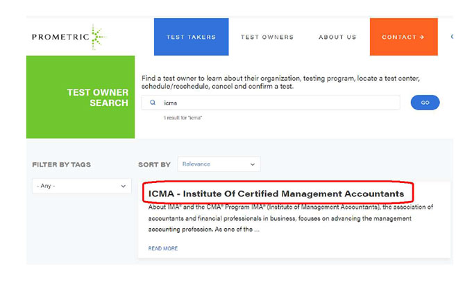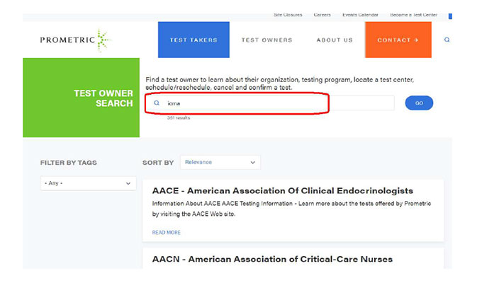 第二步、在 TEST OWNER SEARCH 處輸入相應的考試廠商,例如:ICMA 考生請輸入“ICMA”,SOA 考生請輸入“SOA”等,點擊”Go”。在操作時,請注意每一步的提示,和預約,更改,取消考試的注意事項。下面是一些基本操作步驟,見圖示2。