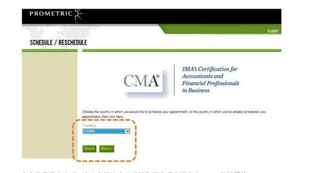 第五步、選擇所要進行考試的國家, 國家或地區(qū)請選擇”CHINA”, 點擊”Next”繼續(xù)預約。