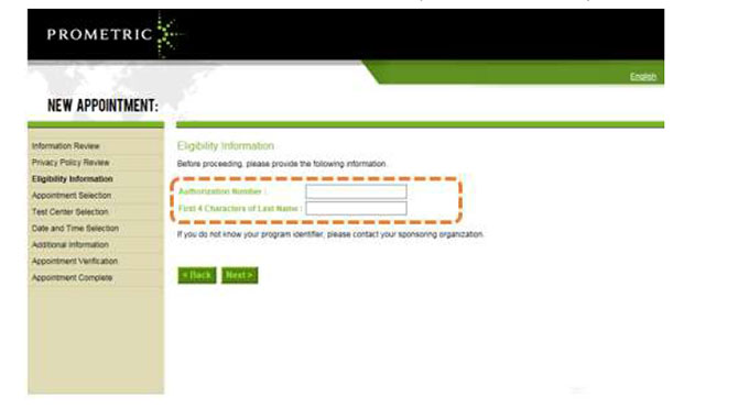 第七步、要求輸入個人的授權號碼以及本人姓氏拼音的前 4 位, 確認信息輸入正確后,點擊”Next”繼續(xù)預約。