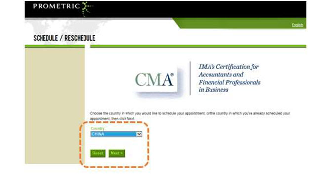 第二步、選擇所要進(jìn)行考試的國(guó)家, 國(guó)家或地區(qū)請(qǐng)選擇”CHINA”, 點(diǎn)擊”Next”繼續(xù)