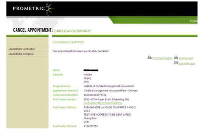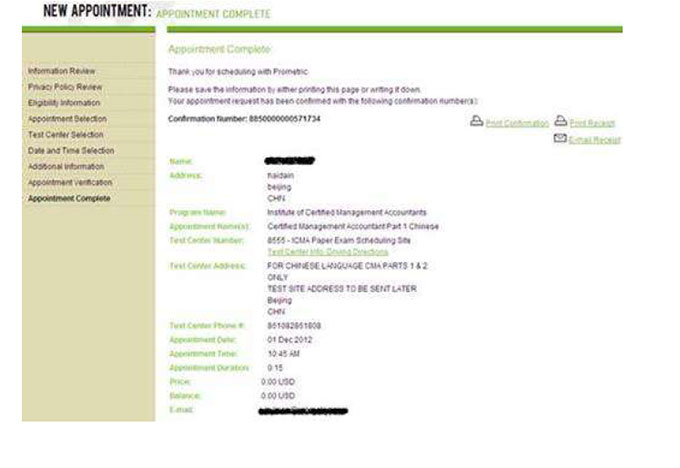第六步、確認(rèn)界面,確認(rèn)號(hào) confirmation number 與第一次預(yù)約相同。 有些郵箱不能收到自動(dòng)發(fā)送的確認(rèn)信,并不會(huì)影響考生參加考試。 但強(qiáng)烈建議考生手動(dòng)點(diǎn)擊 email Receipt 或者 Print Receipt 保留確認(rèn)號(hào),或者截屏保存確認(rèn)界面。