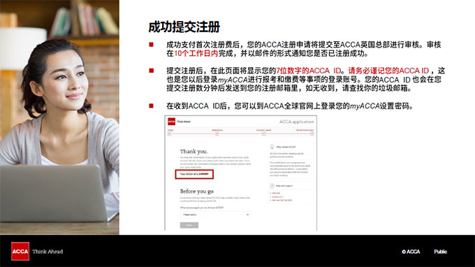 提交注冊后,在此頁面將顯示您的7位數(shù)字的ACCA ID 請務(wù)必記住您的ID,這是您每次登錄都要用的登錄賬號。