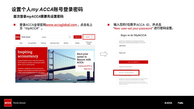 最后我們完成最重要的一步,設(shè)置個人myACCA賬號的登錄密碼,首次登錄需要先設(shè)置密碼。具體操作看下方圖片