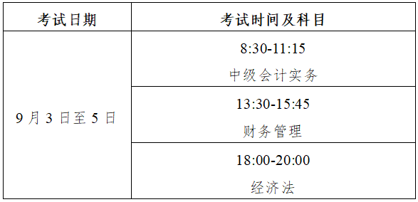 中級資格考試于2022年9月3日至5日舉行,共3個批次,具體安排如下: