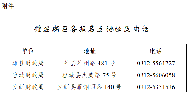 附件:雄安新區(qū)各報名點地址及電話