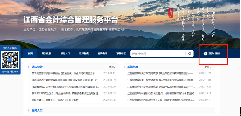1. 按照全省政務(wù)服務(wù)一體化有關(guān)要求,從江西省會計綜合管理服務(wù)平臺點(diǎn)擊“登錄”或“注冊”先進(jìn)入江西政務(wù)服務(wù)網(wǎng)可信身份認(rèn)證系統(tǒng)界面,注冊或登錄后自動會把個人信息與會計綜合系統(tǒng)信息進(jìn)行綁定。
