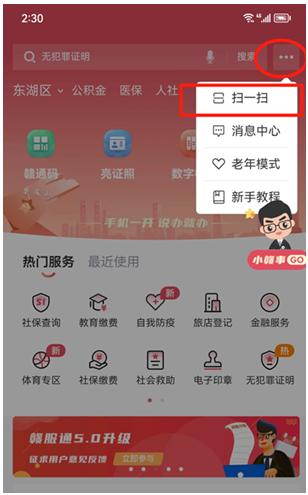 提示:已有贛服通賬戶的用戶,打開贛服通APP或支付寶“贛服通”小程序,使用贛服通掃一掃屏幕上二維碼,快捷掃碼進(jìn)入系統(tǒng)。未有贛服通賬戶的用戶,也可下載贛服通APP或使用支付寶“贛服通”小程序進(jìn)行激活使用。