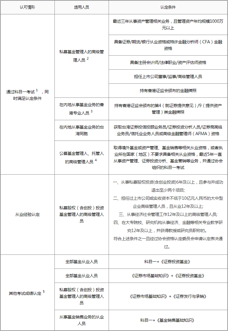 基金從業(yè)資格認(rèn)可情形對(duì)照表