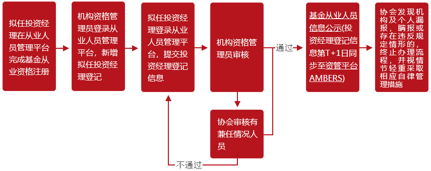 投資經(jīng)理注冊基金從業(yè)資格、進(jìn)行投資經(jīng)理登記應(yīng)通過從業(yè)人員管理平臺進(jìn)行。投資經(jīng)理登記完成后將進(jìn)行信息公示,公示信息接受社會監(jiān)督,對公示信息有異議的,協(xié)會予以核實(shí),發(fā)現(xiàn)機(jī)構(gòu)及個人漏報、瞞報或存在違反規(guī)定情形的,將終止辦理流程,并視情節(jié)輕重采取相應(yīng)自律管理措施。