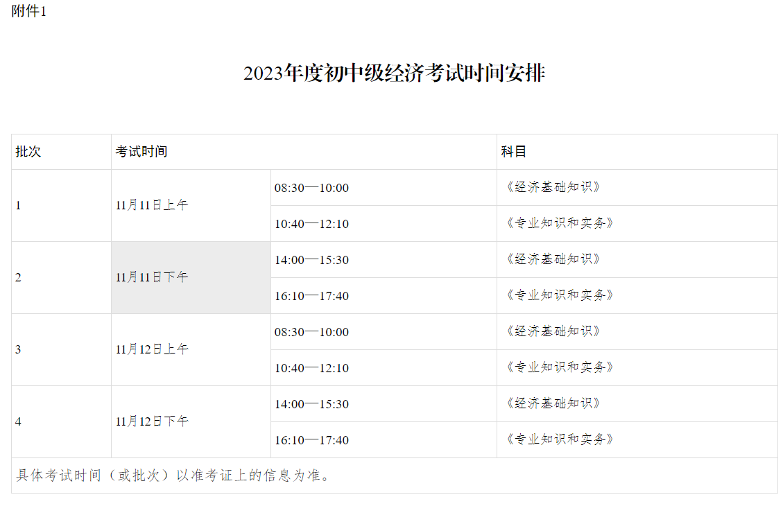 附件:1. 2023年度初中級經(jīng)濟(jì)考試時(shí)間安排