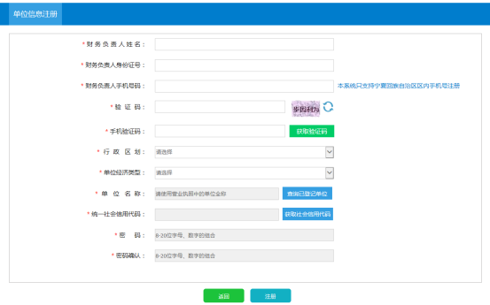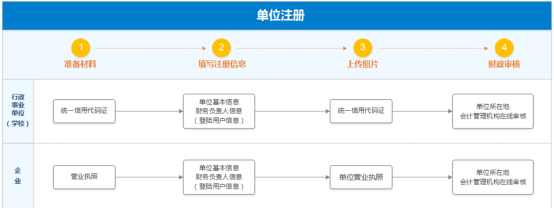 財(cái)務(wù)部門(mén)負(fù)責(zé)人需要先在系統(tǒng)中注冊(cè)單位賬戶(hù)(需要上傳營(yíng)業(yè)執(zhí)照),通過(guò)所在地會(huì)計(jì)管理機(jī)構(gòu)審核后,方可進(jìn)行單位人員注冊(cè)信息審核工作。未在系統(tǒng)中注冊(cè)單位信息的,會(huì)計(jì)人員注冊(cè)時(shí)將無(wú)法選擇該單位,無(wú)法采集。
