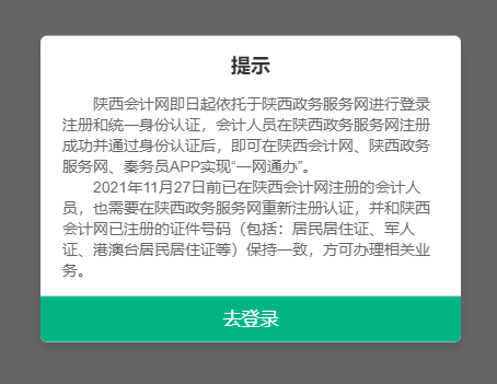 陜西會(huì)計(jì)網(wǎng)即日起依托于陜西政務(wù)服務(wù)網(wǎng)進(jìn)行登錄注冊(cè)和統(tǒng)一身份認(rèn)證,會(huì)計(jì)人員在陜西政務(wù)服務(wù)網(wǎng)注冊(cè)成功并通過(guò)身份認(rèn)證后,即可在陜西會(huì)計(jì)網(wǎng)、陜西政務(wù)服務(wù)網(wǎng)、秦務(wù)員APP實(shí)現(xiàn)“一網(wǎng)通辦”。