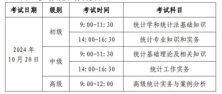 統(tǒng)計(jì)專業(yè)技術(shù)資格考試設(shè)置初級(jí)、中級(jí)和高級(jí)3個(gè)級(jí)別(以下簡(jiǎn)稱初、中、高級(jí)資格考試)。初級(jí)資格考試設(shè)置《統(tǒng)計(jì)學(xué)和統(tǒng)計(jì)法基礎(chǔ)知識(shí)》和《統(tǒng)計(jì)專業(yè)知識(shí)和實(shí)務(wù)》2個(gè)科目,中級(jí)資格考試設(shè)置《統(tǒng)計(jì)基礎(chǔ)理論及相關(guān)知識(shí)》和《統(tǒng)計(jì)工作實(shí)務(wù)》2個(gè)科目,高級(jí)資格考試設(shè)置《高級(jí)統(tǒng)計(jì)實(shí)務(wù)與案例分析》1個(gè)科目