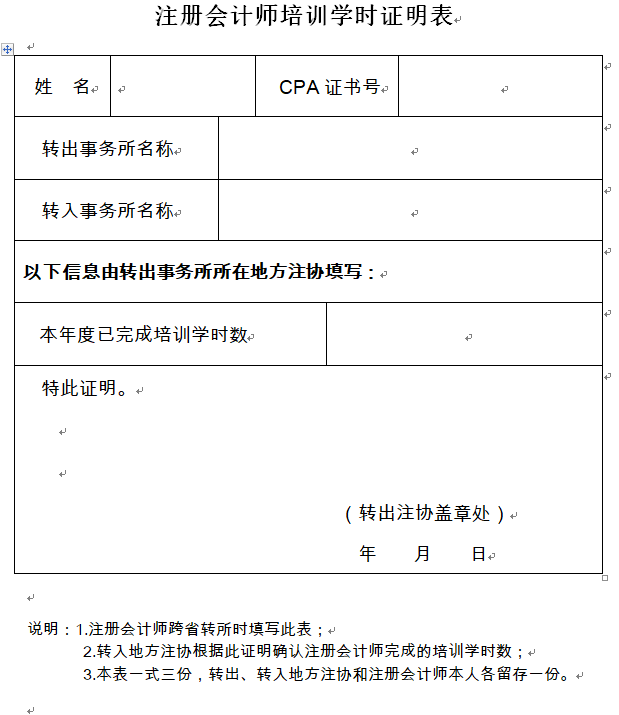 注冊(cè)會(huì)計(jì)師培訓(xùn)學(xué)時(shí)證明表