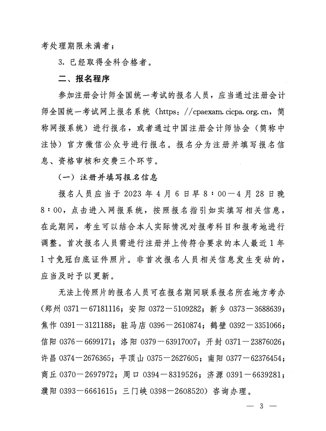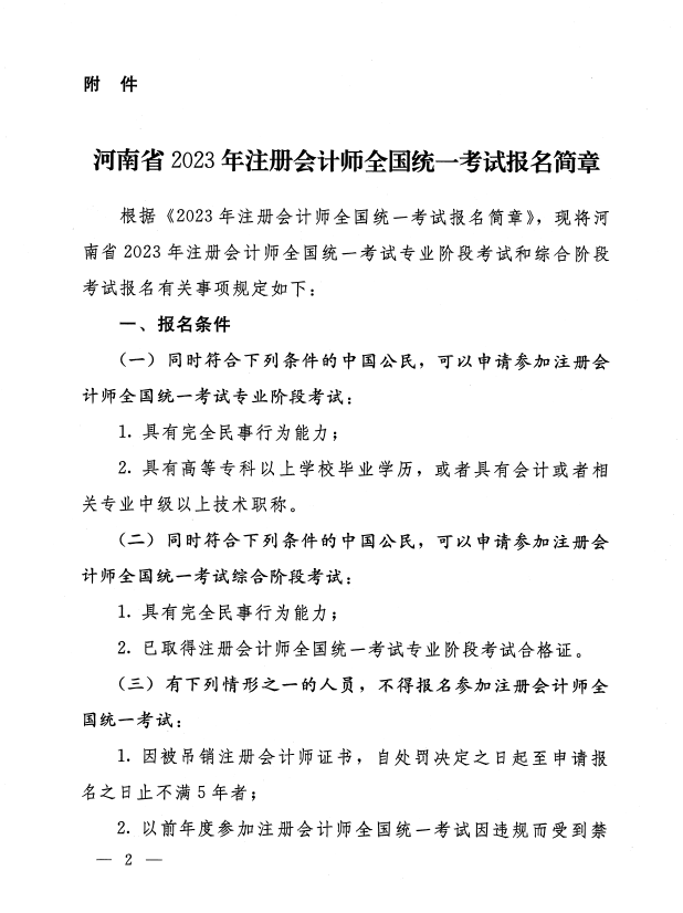 附件:河南省2023年注冊會計師全國統(tǒng)一考試報名簡章
