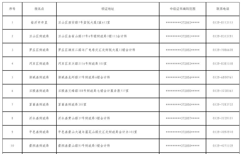 附件:臨沂市會(huì)計(jì)中級(jí)證書領(lǐng)取地點(diǎn)一覽表
