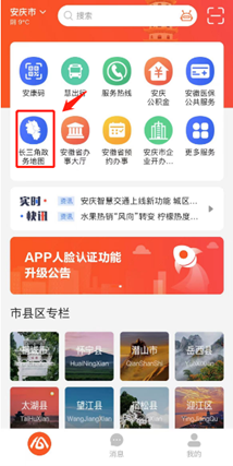 第一步:定位“安慶市”,在皖事通首頁選在“長三角政務(wù)地圖”,進(jìn)入地圖頁面。