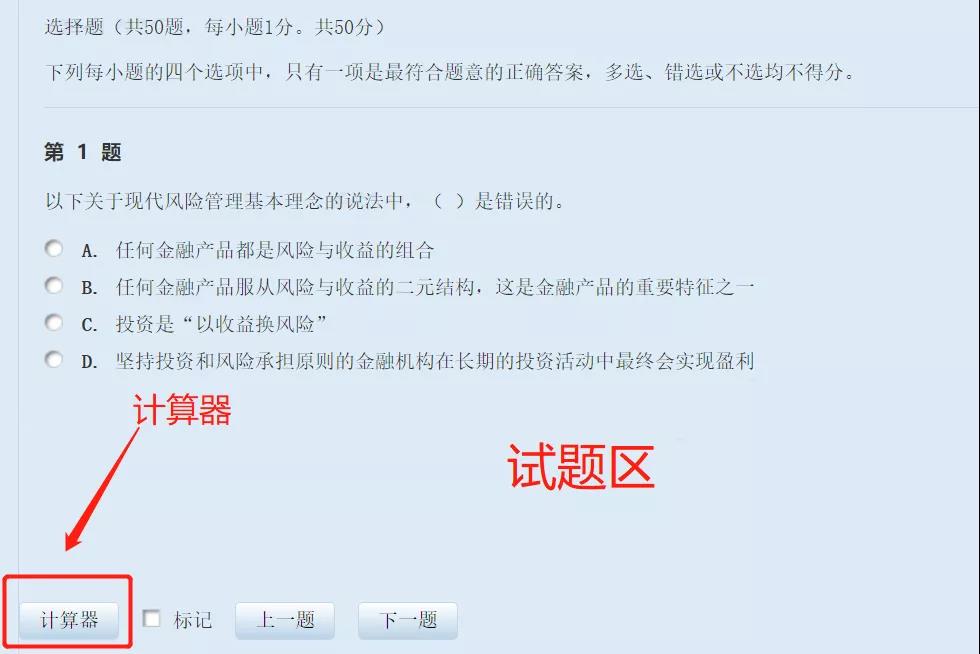 2.題號(hào)列表下方為“計(jì)算器”按鈕,點(diǎn)擊該按鈕可調(diào)出計(jì)算器。