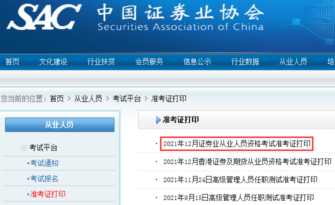 點(diǎn)擊圖片進(jìn)入>>>2021年12月證券從業(yè)資格考試準(zhǔn)考證打印入口: