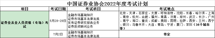 證券業(yè)從業(yè)人員資格(專場(chǎng))考試安排如下: